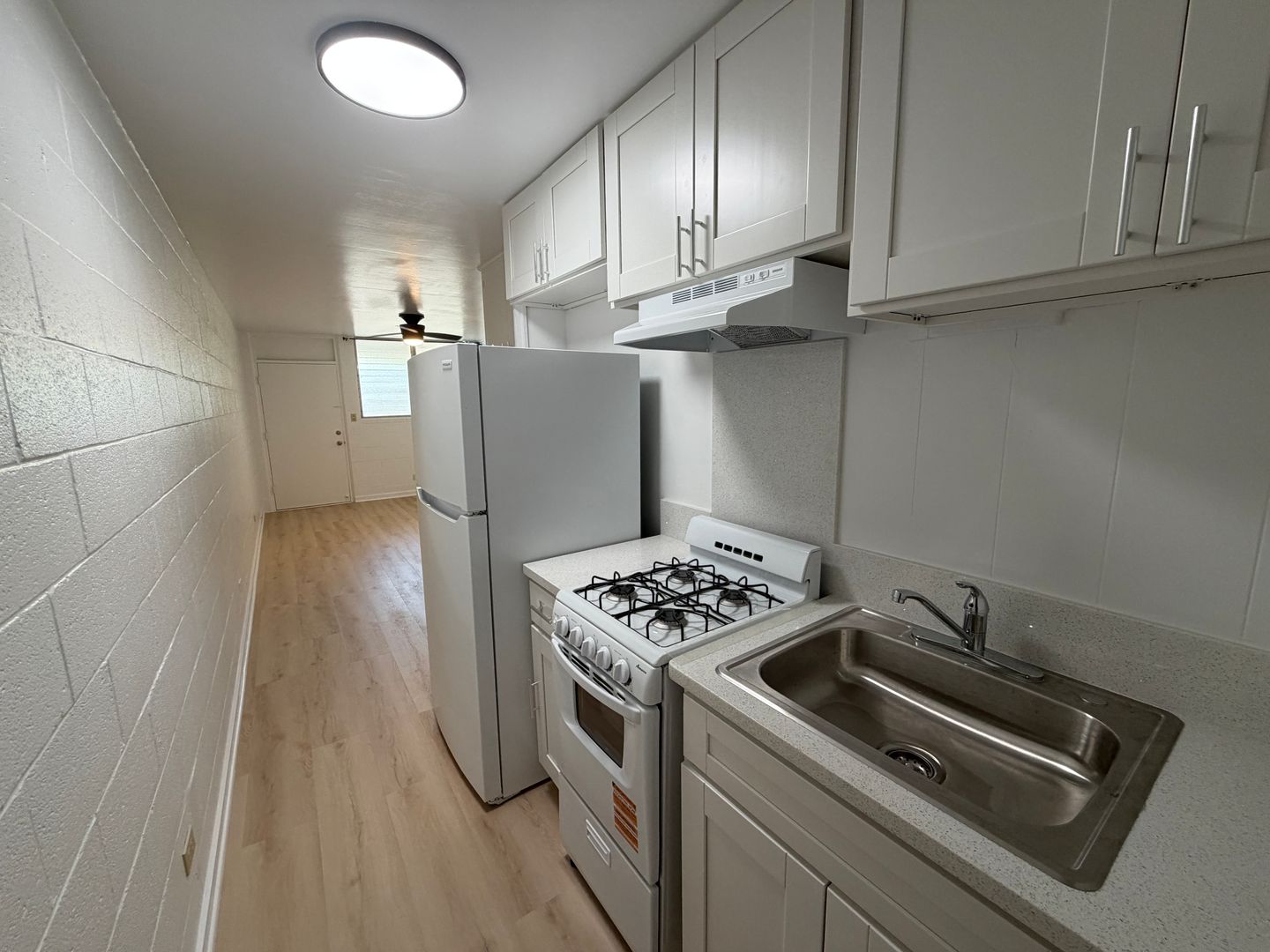 A newly renovated 2BR/1BA unit on the second floor in Ala Moana, conveniently located behind Walmart/Sam's Club. Tenant pays electricity, gas, cable and internet. Assigned parking stall available for $100/mo. Community laundry available on-site. No smoking or pets allowed. Minimum lease term is for 6-months; 1-year is preferred. Minimum income qualification is 2.5 times monthly rent. Renters insurance is required.
